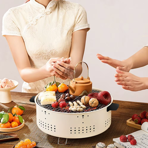 1. Multifunctional Portable Grill: Experience the versatility of this round barbecue stove, designed for outdoor cooking, tea brewing, and portable barbecuing.